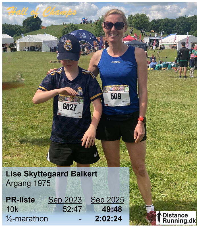 September 2025: Ny kvinde i Hall of Champs: Lise løb sit første halvmaraton til Cph Half i tiden 2:02:24. Tillykke!